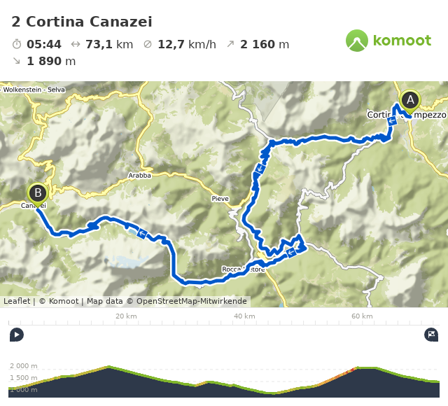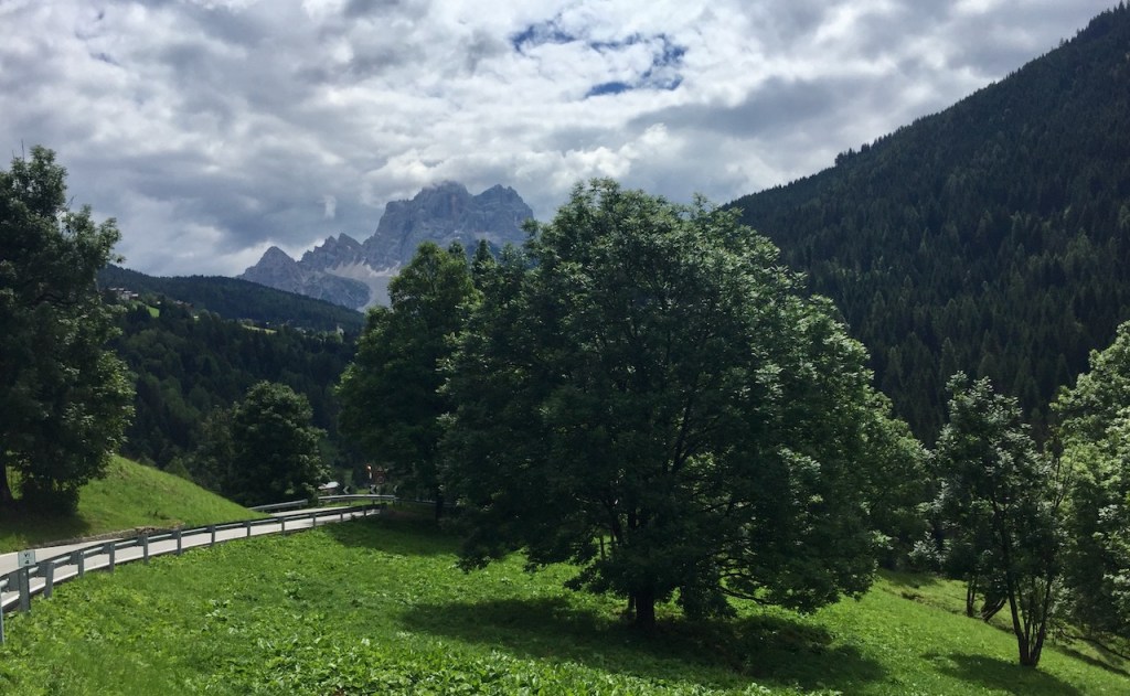 Heute Morgen hätte ich mir eine so harte Etappe nicht vorstellen können, weil ich zu sehr mit der fantastischen Lage von Cortina beschäftigt war. Wo immer du bist, kannst du die Berge ringsum bewundern. Nicht zu vergessen der Corso Italia mit seinen zahlreichen Restaurants, Bars und Geschäften. Nach so vielen Stunden auf dem Rad ist es schön unter Menschen zu sein. Ich hatte auch das Glück, jemanden zu treffen, mit dem ich stundenlang reden können hätte. Die Freundlichkeit und Sympathie von Herrn Emilio vom Hotel Villa Neve werde ich nicht so schnell vergessen. Er ist in der Nähe von Grado geboren, vom Strand, wo ich als Kind baden ging. Emilio mochte, wie ich auch, die Berge als Junge nicht, aber er entdeckte und schätzte sie im Erwachsenenalter. Wenn ich im Dialekt sprechen kann, fühle ich mich immer zu Hause und wie sagt man so schön? Die Welt ist wirklich klein!