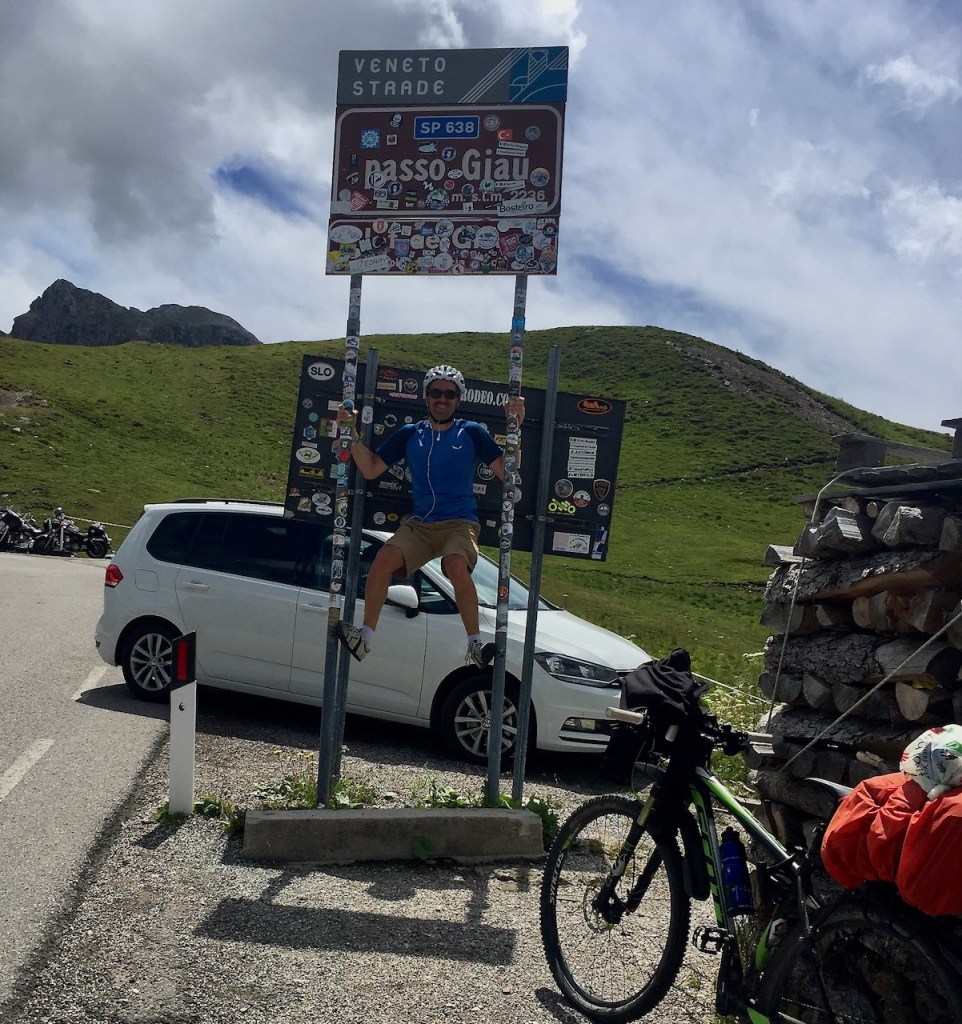 Bekannterweise sind die Steigungen und die Anzahl der Autos und vor allem der schweren Fahrzeuge umgekehrt proportional sind. Als ich endlich durch den Wald fahren kann, bin ich an der Grenze zwischen Südtirol und Venetien. Die Straße wird steiler, aber es sind keine unerschwinglichen Hänge und der Gipfel ist schnell erreicht.