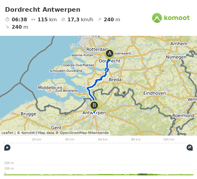 Die ersten Kilometer fahre ich entlang der Unteren Merwede, einem der vielen Flüsse des Rheins, und ich durchquere somit das Hafengebiet. Dann fahre ich an der A16 entlang und die Landschaft ist nicht sehenswert. Mich beeindruckt dagegen die Brücke der Autobahn mit dem angrenzenden Radweg: Offensichtlich haben sie beim Bau auch an die Radfahrer gedacht. Natürlich könnte die Balustrade etwas höher sein, aber es gibt keine Perfektion, nur das Leben!