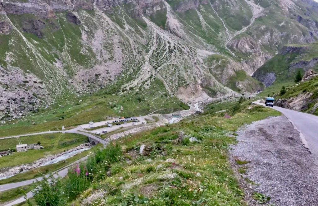 Ich muss zurück auf die Landesstraße nach Val d’Isère und durch einen hässlichen Tunnel fahren. Ich versuche, sie zu vermeiden, aber die Karte und die Morphologie des Gebiets lassen mir keine andere Wahl. Der Tunnel ist beleuchtet, aber er ist sehr eng und es herrscht viel Verkehr. Ich habe Glück, dass ich zu einem günstigen Zeitpunkt einfahre: Nur wenige Autos und keine Lastwagen fahren an mir vorbei. Ich trete mit aller Kraft in die Pedale, und als ich nach etwa einem Kilometer wieder herauskomme, bin ich sehr erleichtert.