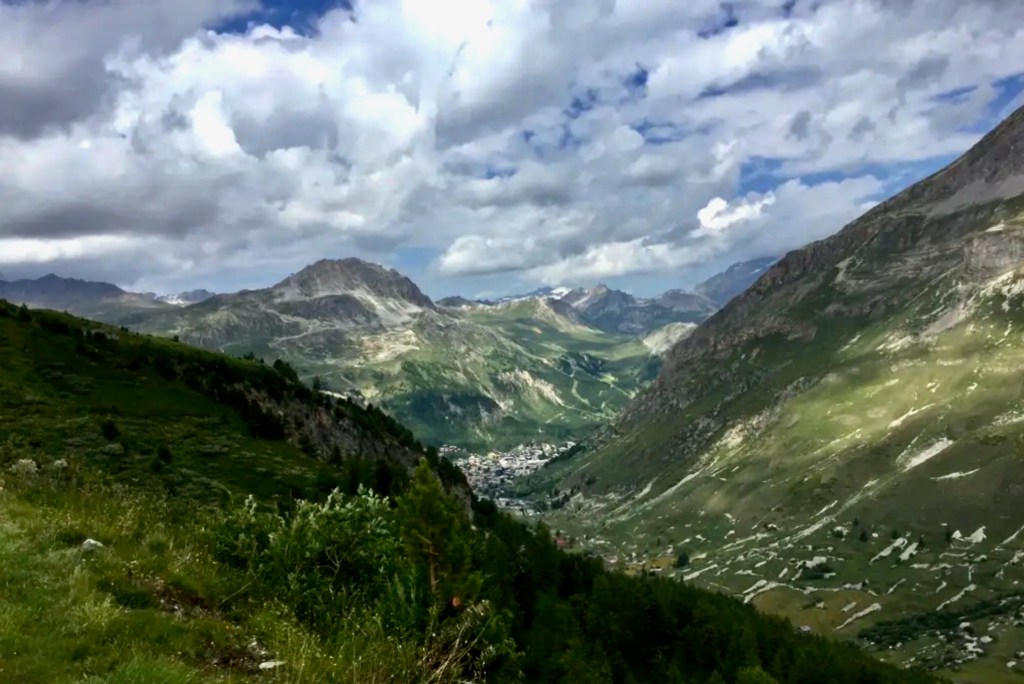 Raggiungo Val d’Isère dopo 3 km. Abitazioni, negozi, ristoranti. Non vale la pena fermarsi. Faccio rifornimento perché non credo di trovare un granché fino al passo e poi vedo delle nuvole addensarsi all’orizzonte. Meglio rimettersi in marcia.