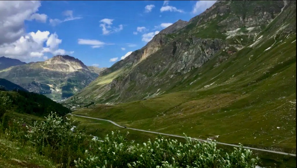 Devo tornare sulla strada principale che porta a Val d’Isère ed entrare in una brutta galleria. Cerco in tutti i modi di evitarla ma la cartina e la morfologia del territorio non mi vengono in aiuto. Il tunnel è illuminato ma è davvero stretto e c’è molto traffico. Ho la fortuna di entrare in un momento favorevole: mi affianca solo qualche automobile e nessun camion. Picchio sui pedali con tutta la forza che ho nelle gambe e quando esco, dopo circa un chilometro, tiro un respiro di sollievo.