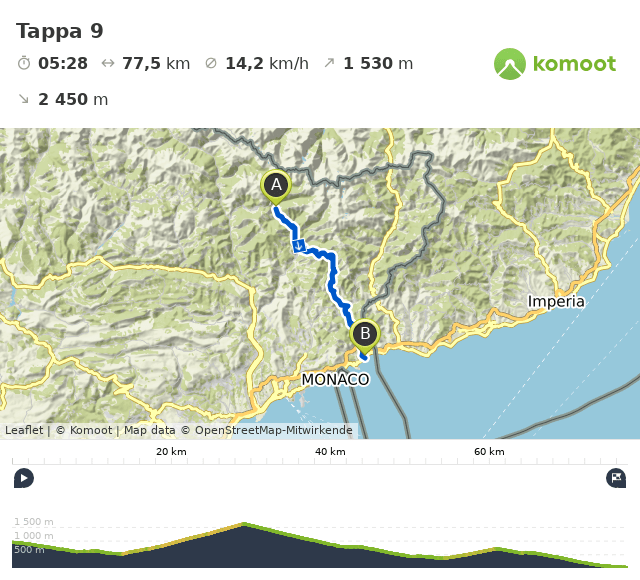 Lasciata la valle del fiume Vésubie, appare subito il cartello dei15 km fche mi porteranno ino ai 1.607 metri del Col de Turini. È l’ultima vera salita prima di arrivare a Menton.