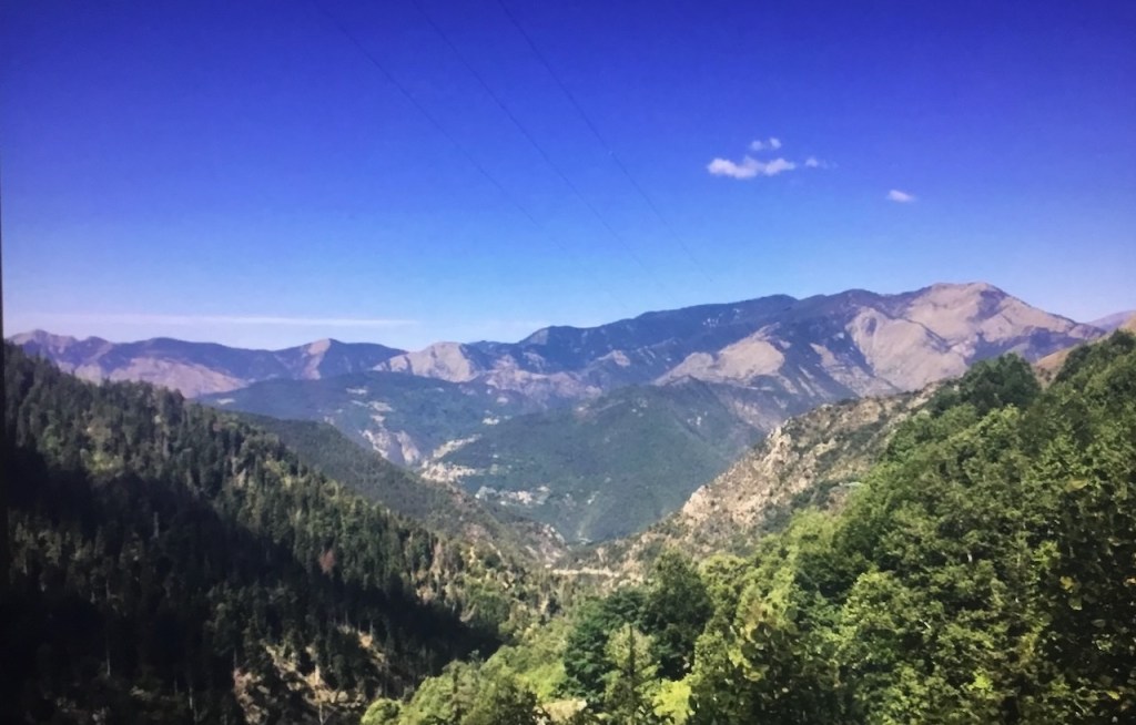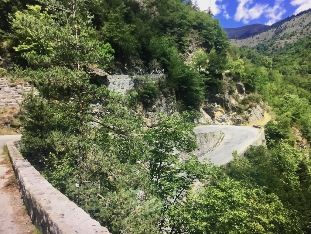 È una strada ricca di serpentine che si sviluppa in un bosco tipico della macchia mediterranea. Qualche curva e scorgo, in un giardino, la prima palma. Non ci sono grandi pendenze e dopo soli 3 km arrivo nel paesino di La Bollène-Vésubie. Approfitto dell’amenità che mi circonda per fare una piccola pausa.