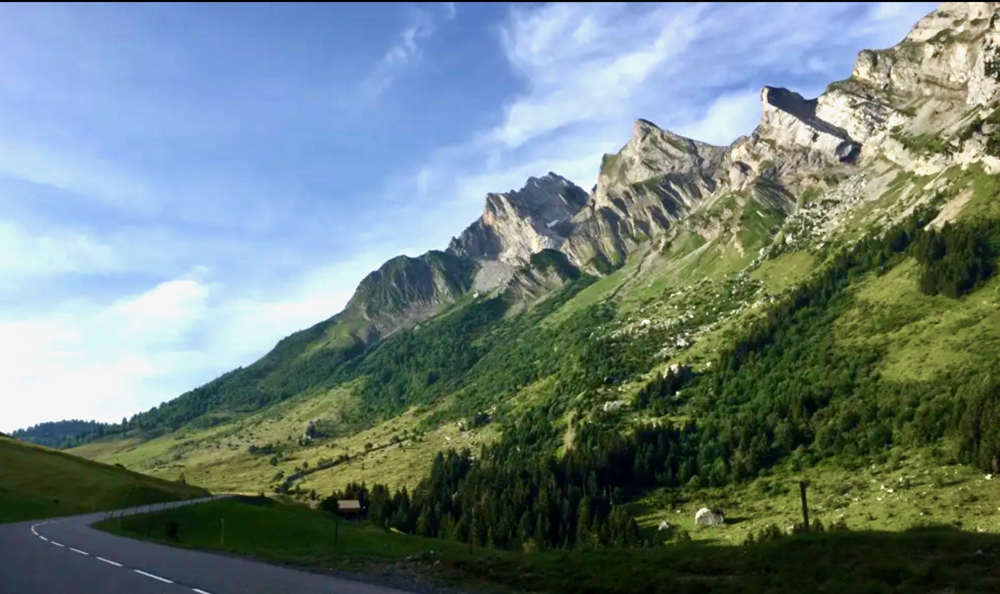 Una salita di 10 km mi porta a Flumet (siamo a 900 metri di altitudine), ovvero all’inizio della prossima ascesa, quella del Col des Saisies con i suoi 1.650 metri. Il cielo inizia a riempirsi di nuvole e, visto che in cima c’é poco da immortalare, riparto subito.