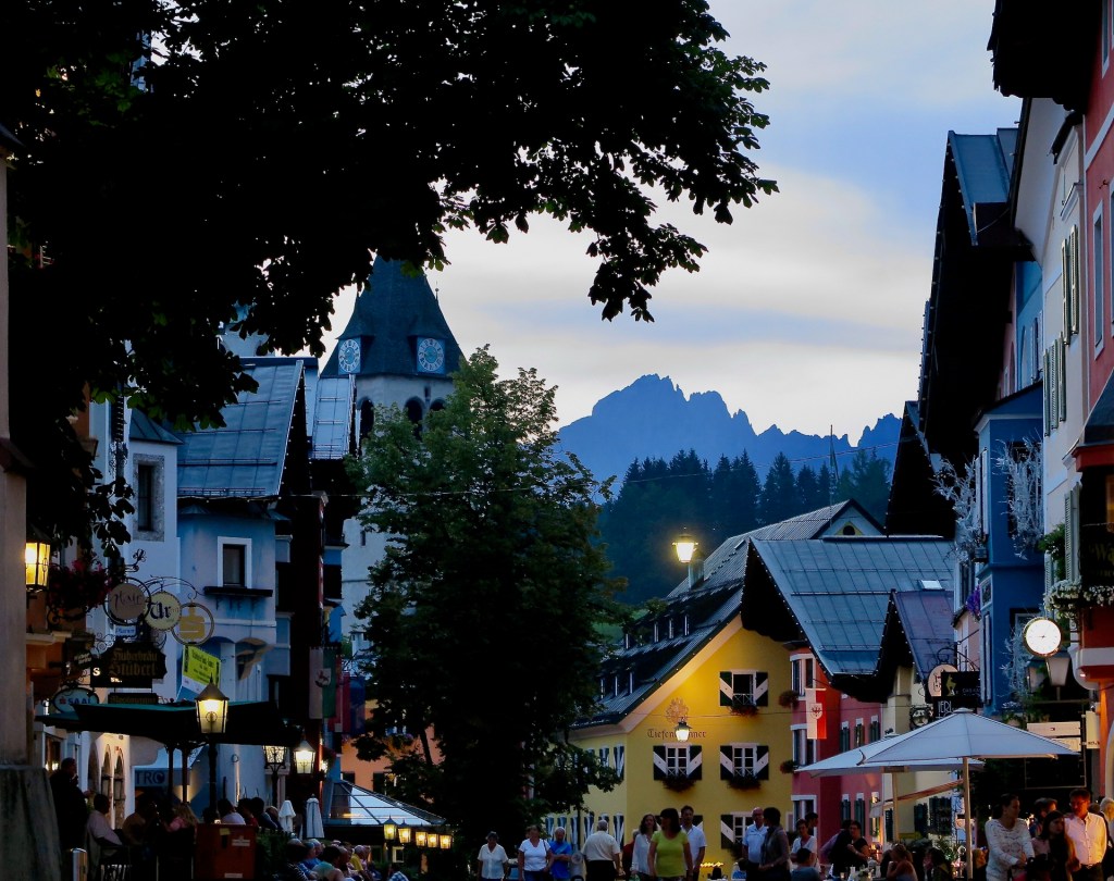 Kitzbühel mit der legendären “Streif” ist das berühmteste Wintersportzentrum Österreichs, aber der Blick auf den Wilden Kaiser und die engen Gassen des Zentrums sind auch in den Sommermonaten eine Attraktion.