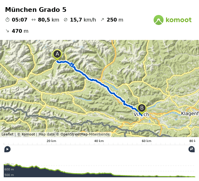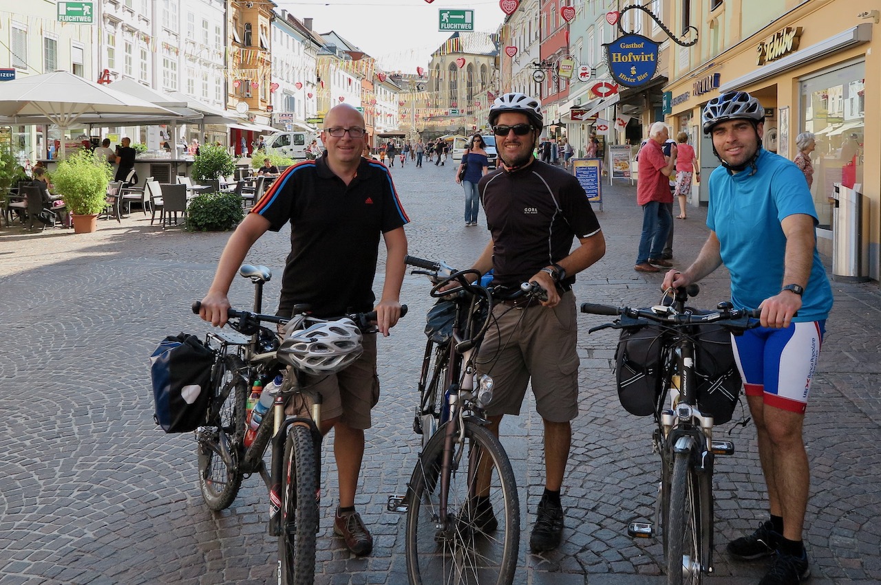 Es ist eine einfache Etappe, und wir kommen am späten Nachmittag in Villach an. Heute schaffen wir es, eine Dusche zu nehmen, sobald wir ein Hotel gefunden haben, und haben auch Zeit für einen kleinen Rundgang durch das Zentrum. Wir genießen den Abend, und beim Abendessen wiederhole ich mich: Schnitzel, Pommes und Bier. Schließlich sind wir in Österreich.
