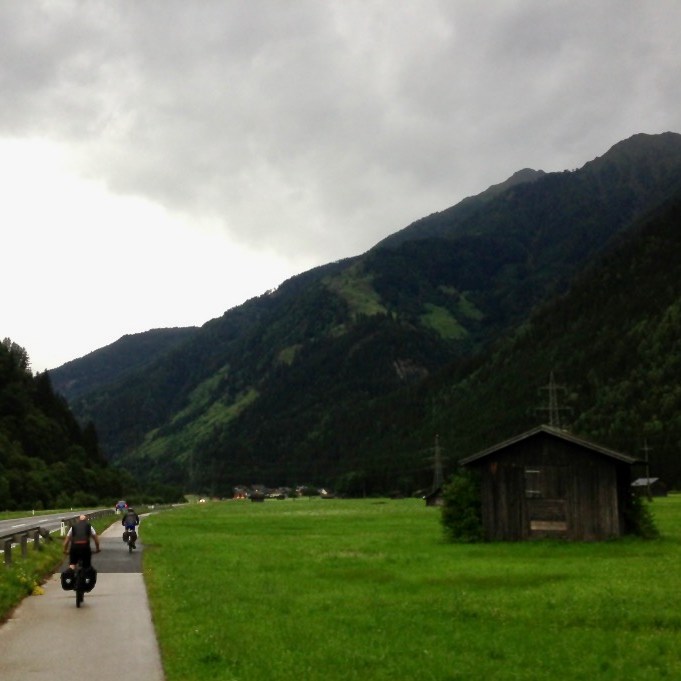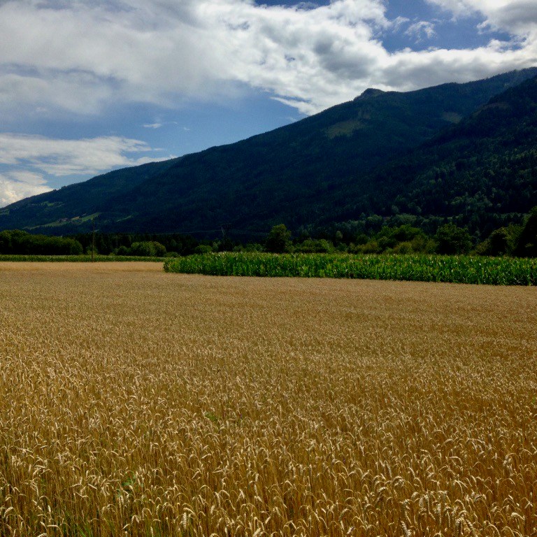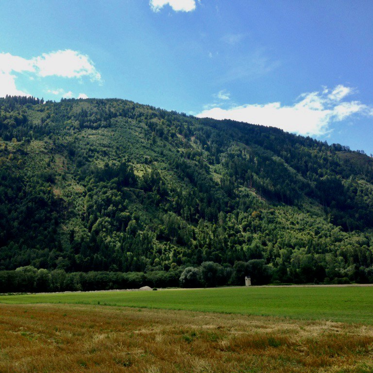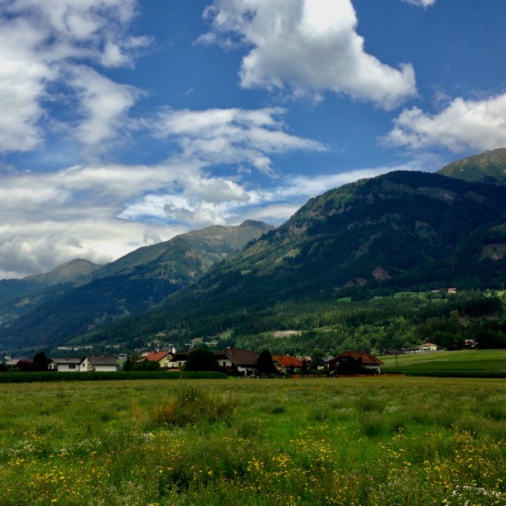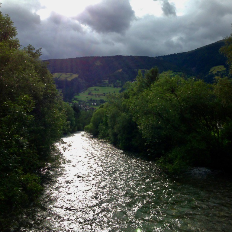 Seguiamo il corso del fiume Möll ed il sole ogni tanto fa capolino in mezzo alle nuvole. Tolto qualche dosso, la strada è in leggera discesa ed già nei primi chilometri inizio ad ammirare le tre costanti di questa tappa: l’atmosfera particolare di una vallata, le varie tonalità verde ed il cambio di vegetazione.