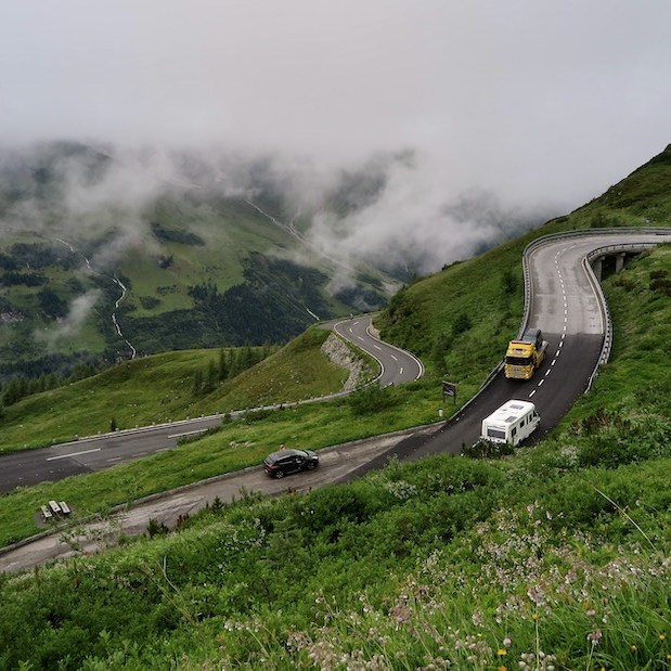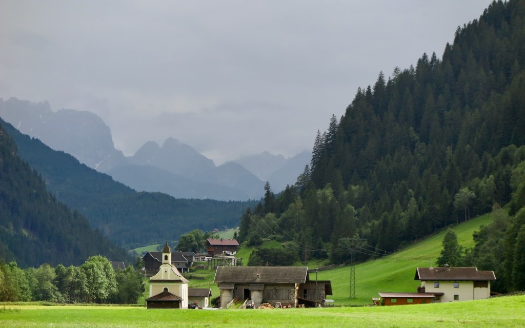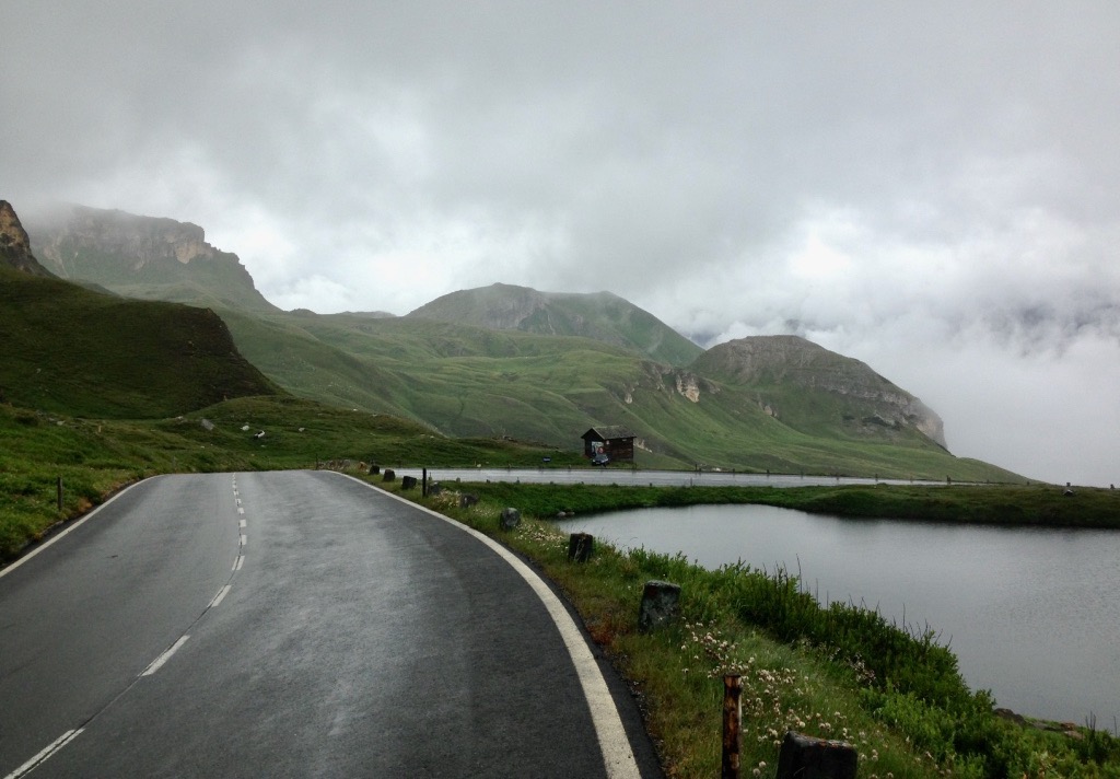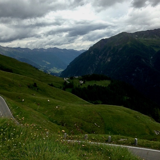 Ci rimettiamo in sella e la discesa verso Heiligenblut è altrettanto spettacolare. Le temperature si alzano e intravediamo qualche scorcio di azzurro nel cielo. Seguiamo il fiume Möll, un affluente della Drava che nasce proprio sul Großglockner. Dopo una ventina di chilometri fatti in leggera discesa, ci rendiamo conto che non ci sono molti hotel nella zona e che inizia a farsi tardi. In montagna le cucine chiudono presto, anche quelle degli alberghi.