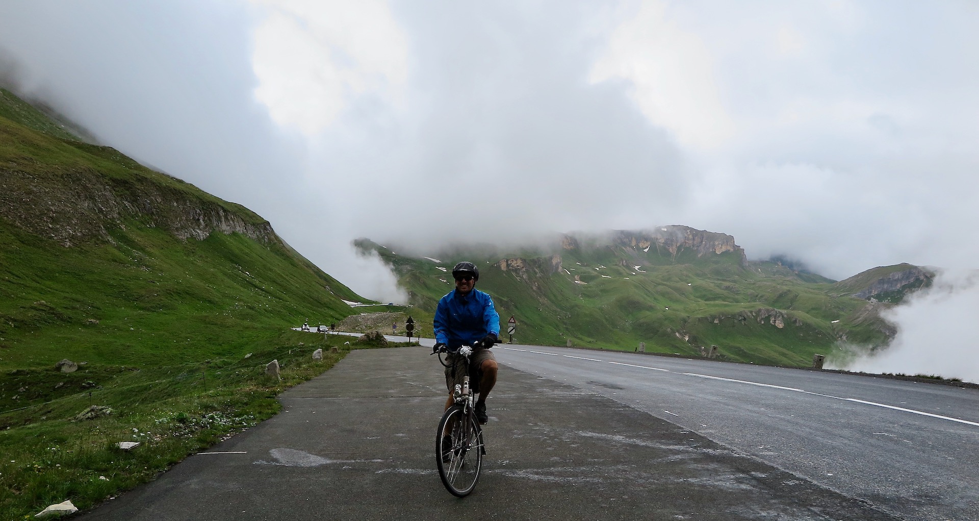 L’emozione è davvero grande ma una ancora più forte ce la regala il racconto di un signore molto anziano che si offre di farci la foto. Ora vive nella zona di Colonia e quando era ancora un ragazzo era salito sul Großglockner con una bicicletta di altri tempi. Oggi si è fatto circa 800 km di macchina per tornare giovane e per poter rivivere, per un attimo, quella passione che lo aveva spinto ad affrontare una vera e propria impresa, salendo su una strada che allora (agli inizi degli anni cinquanta del scolo scorso) non era ancora asfaltata. Storie che solo le due ruote sanno raccontare.