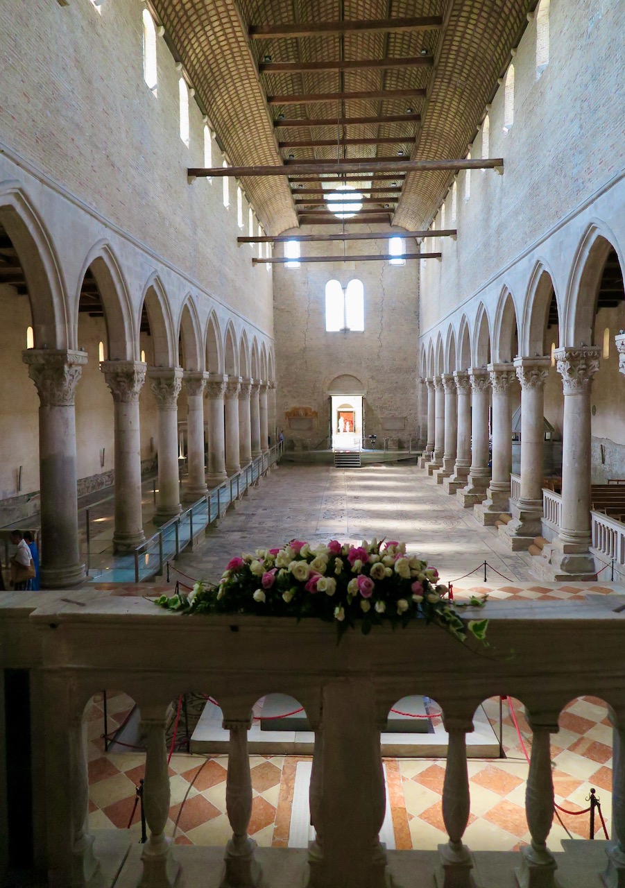 Die antiken Säulen des römischen Forums in Aquileia ließen mich als Kind den Geruch von Salz erahnen, und in der Schule lehrten sie uns, dass Aquileia zur Zeit des Römischen Reiches, als die Bevölkerung 200.000 Einwohner erreichte, einer der wichtigsten Handelshäfen an der oberen Adria war. In der Ferne sehen wir den Glockenturm der Basilika, der für seinen Mosaikboden aus dem 4. Jahrhundert berühmt ist: er ist der größte in der gesamten westlichen christlichen Welt. Das erste Gebäude wurde 313 n. Chr. erbaut, aber die heutige Basilika ist diejenige, die 1031 geweiht wurde.