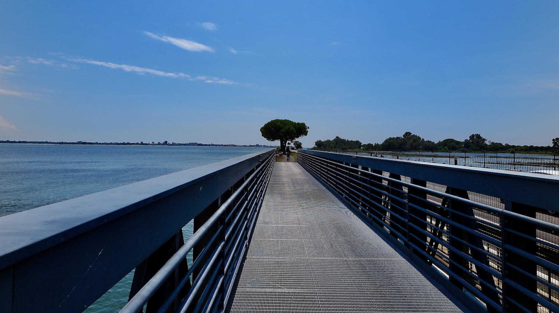 Der Radweg folgt der Route der alten Eisenbahn, und die Ruinen des Bahnhofs machen mir klar, dass wir jetzt fast am Ziel sind. Wenn ich das Meer sehe, bekomme ich einen Kloß im Hals. Ich bin wirklich aufgeregt und muss anhalten, bevor ich in die Laguna auf einem fünf Kilometer langen Damm einfahre.