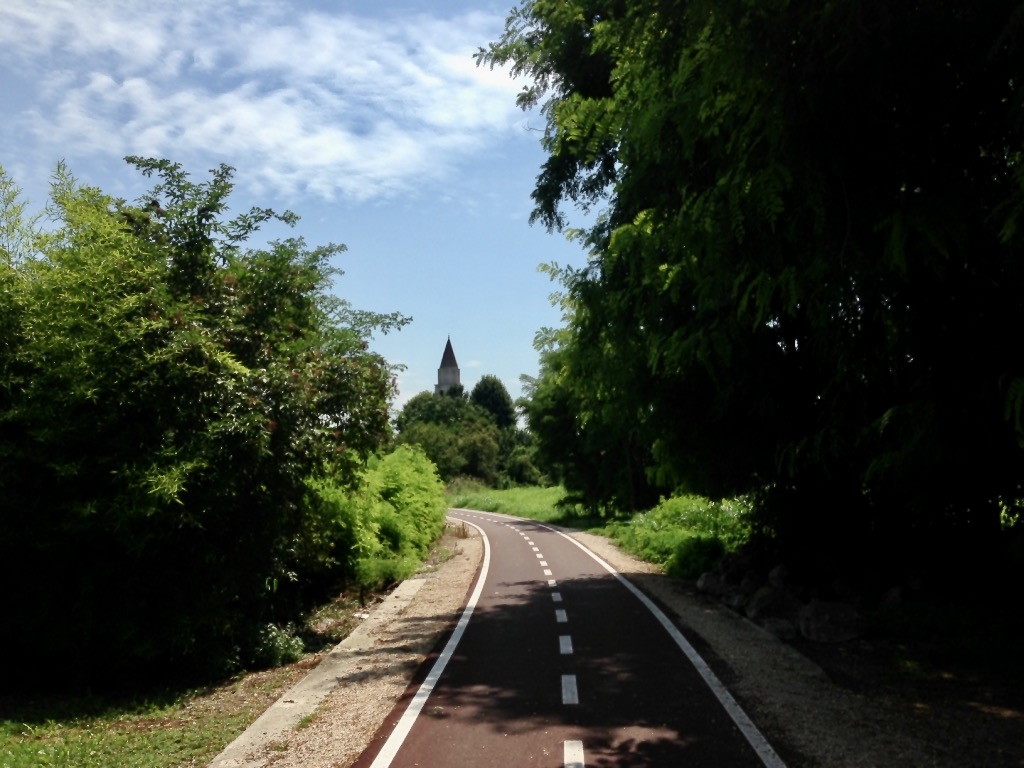 Appena usciti da Udine ci troviamo subito a pedalare in mezzo ai filari di vite. Io sono cresciuto fra le vigne e capisco subito che mi attende un breve viaggio attraverso i ricordi legati alla mia infanzia: la campagna friulana, i paesi in cui andavo da bambino, la spiaggia dove costruivo i castelli di sabbia e raccoglievo conchiglie.