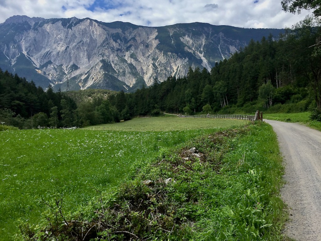In der Nähe von Tumpen halte ich vor einer Kletterwand mit kleinem Spielplatz: In Österreich denken sie wirklich an alles! Am Ötztal Bahnhof nehme ich den Radweg entlang des Inns, den ich als Radweg entlang der Autobahn bezeichnen würde! Ich kann einen Blick auf den Fluss erhaschen und ab und zu gibt es einen Abschnitt, das sich von der Betonzunge entfernt, aber ich muss in die Gegend um Rietz kommen (es sind nur ein paar Kilometer bis Innsbruck), um die Landschaft voll genießen zu können.