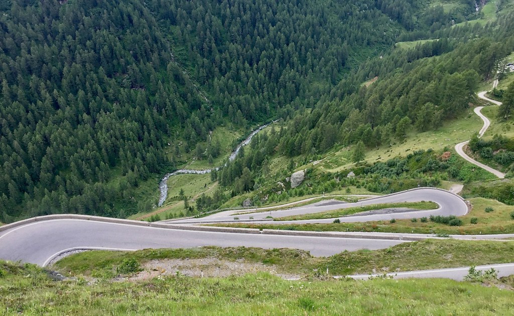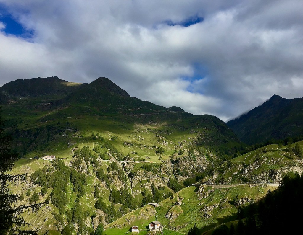 Es ist keine Menschenseele in der Nähe und ich höre das Zwitschern der Vögel, die einzigen, die die heilige Stille des Berges durchbrechen. Es ist eine magische Atmosphäre. Ich fahre in vollkommener Einsamkeit hinauf und muss etwa zehn Kilometer zurücklegen, bis ich in der Nähe von Moos ein Lebenszeichen erblicke. Die ersten Steigungen, ein paar Kehren, die Tunnels: ein Film, den ich schon 2018 gesehen habe, aber diesmal habe ich meinen Rucksack dabei und der Unterschied ist spürbar. Die Steigungen, die mir damals nicht so herausfordernd erschienen, spüre ich jetzt mehr in den Beinen, und nach etwa fünfzehn Kilometern bin ich erleichtert, als ich die geliebte Ebene sehe, die den Anstieg in zwei Teile teilt: vier Kilometer Halb-Entspannung mit einer leicht bergab führenden Strecke, auf der ich meine Muskeln lockern kann. Zwei Jahre sind seit dem letzten Aufstieg vergangen, aber die Erinnerungen sind immer noch lebendig, und wenn ich die kleine Brücke über die Passer sehe, weiß ich sofort, dass die schwierigen Kehren und die anspruchsvolleren Abschnitte auf mich warten.