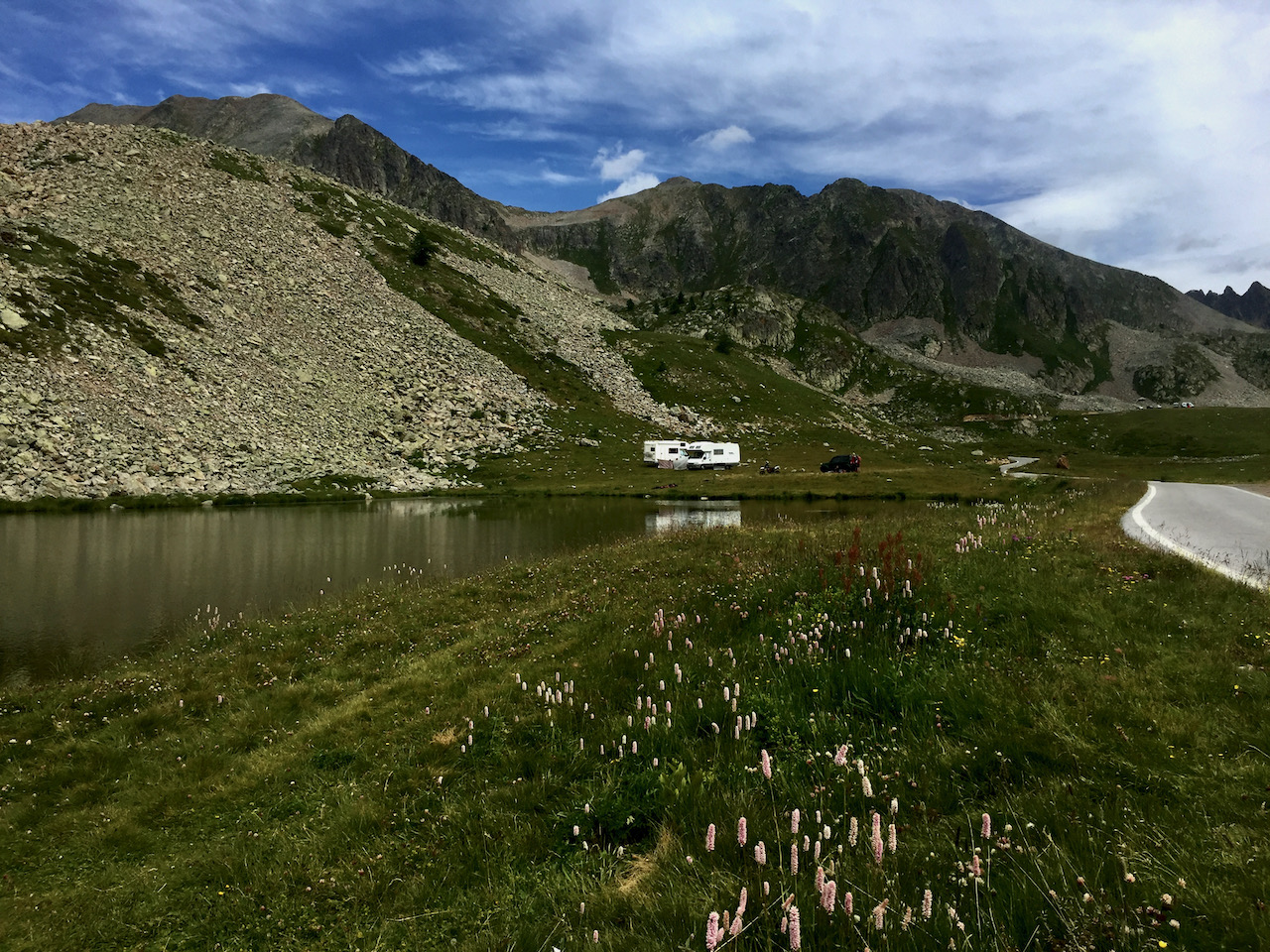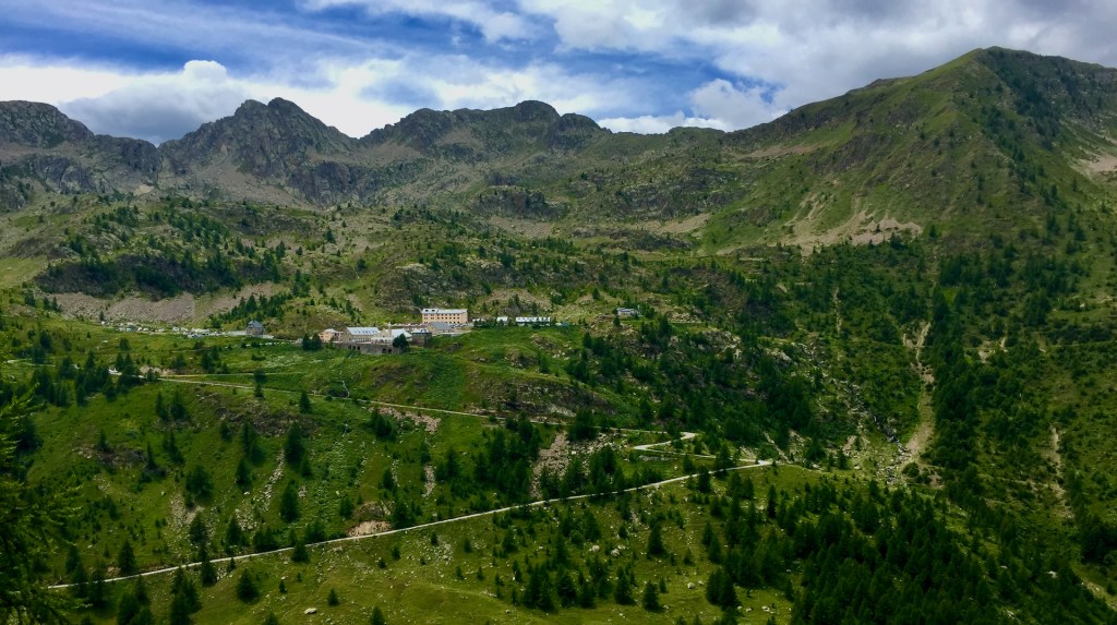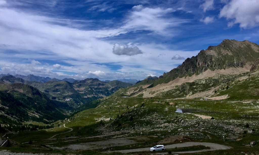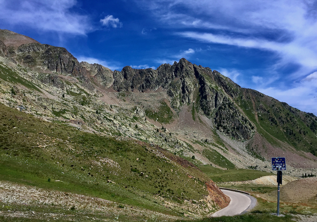 Archiviati i primi 15 km di salita, arrivo al bivio che porta al santuario di Sant’Anna di Vinadio, il più alto d’Europa. Nelle Alpi ci sono in realtà altre chiese ad altitudini più elevate ma sono raggiungibili solo a piedi e per molti ciclisti i 2020 metri del Santuario sono una tappa obbligata ma io mi accontento di ammirarlo da lontano. È il primo giorno e non sono in grado di valutare le forze e decido di proseguire verso la vetta della Lombarda seguendo il cartello „Francia“.